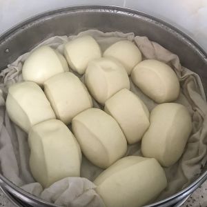 切成大小均匀的面团放进蒸笼第二发酵约5分钟