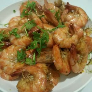 油烧热,下葱姜蒜和虾头,煎出红油。把虾头捞出。