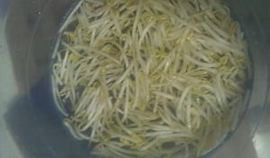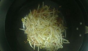 将豆芽放入翻炒,再放入少许鸡精。