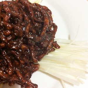 锅中留少许的低油,调成小火,再倒入蚝油,最后倒入甜面酱,搅拌后倒入炒好的肉丝回入锅中,改成大火快速翻炒,使每条肉丝都挂上酱料,出锅前淋入一点香油,即可