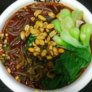 土豆粉入开水锅中烫一分钟捞出入汤盆中。
