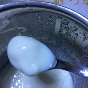 将30g糖加入60g水中,煮沸。(喜欢甜一些的小伙伴可以再加5g糖,或者过后加也可以。)