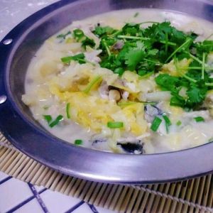 放入鱼汤,鱼骨。加入适量盐,味精,料酒和胡椒粉。等到烧沸后,把鱼片下锅。