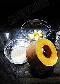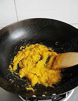 南瓜去皮切成小块,用微波炉或锅煮至熟透,并趁热压成茸。