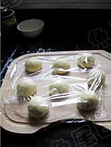 取出发酵好的面团,用手把面团里的空气压出,平均分割为8等份揉圆,盖上保鲜膜,静止15分钟。