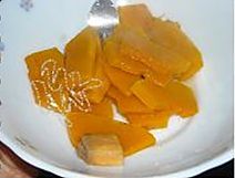 125克南瓜蒸熟,加入1小勺盐,1快腐乳压成瓜泥;