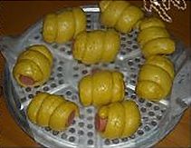 蒸架上铺上纱布或油纸,把香肠卷卷放上去10分钟;