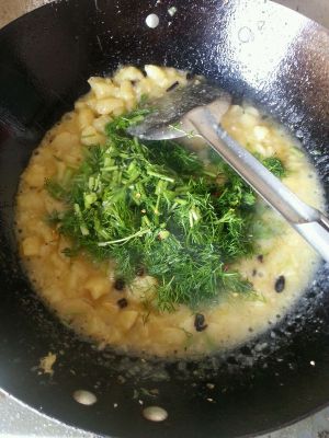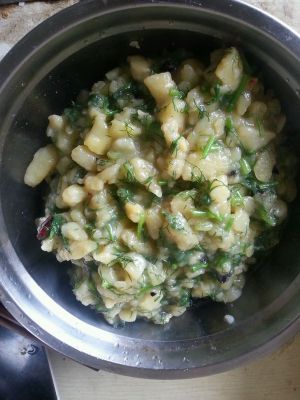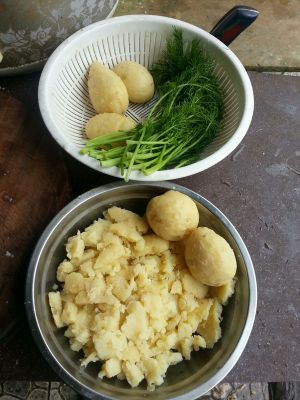 先把洋芋煮熟去皮用菜刀压碎备用。