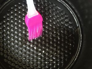 先将100克油和100克牛奶用刮刀搅拌均匀。