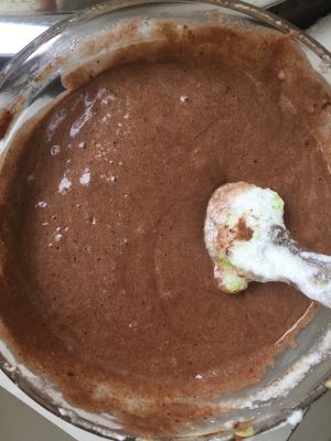 这个只放了一次蛋液,以后放的可可粉,搅拌成这样的。