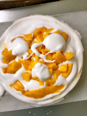 自己喜欢什么水果可以放到淡奶油打发的奶油上面哦,淡奶油打发不用加糖,口感,甜度都很好哦。