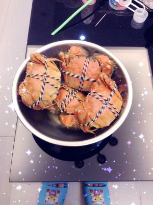 把螃蟹用米酒灌半醉,然后煮十分钟左右,姜挤汁撒上
