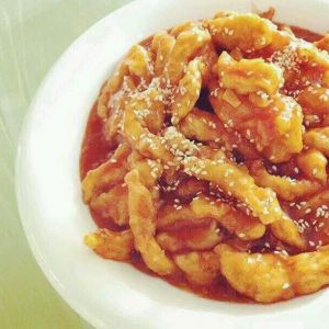 番茄酱,加3勺白糖,两勺醋,2勺料酒,2勺酱油熬制酱汁,再加上肉翻炒即可