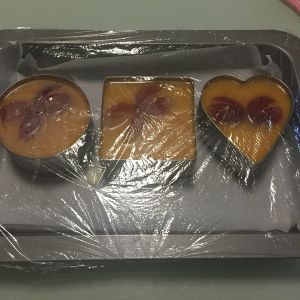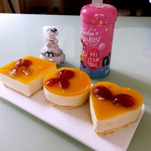 模具中放入蛋糕胚倒入慕斯液,将慕斯蛋糕放入冰箱冷藏使其凝固。(这里忘记拍照了