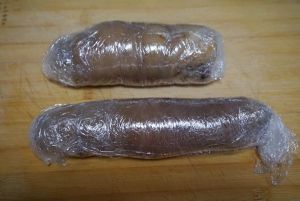 高压过后,把肘子取出,放到还有一点温热,不要太凉,太凉皮就硬了,不好卷;也不要太热的时候整形,容易保鲜膜里出现水汽,影响肘子的口感。