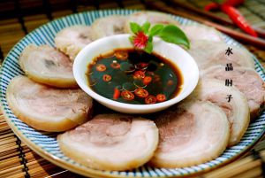 晶莹剔透的肘子,蘸着汁吃,特别香。