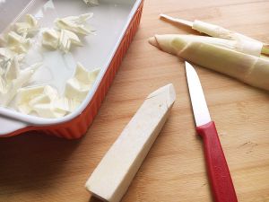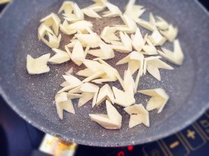 锅里加清水煮沸,放入茭白花瓣煮2分钟。