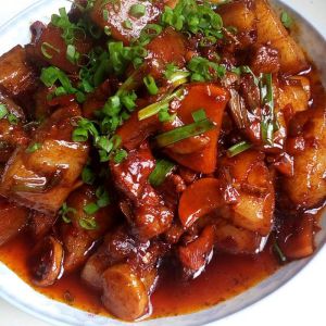 放点鸡精,起锅,撒上葱花!美味的红烧肉就可以吃啦!