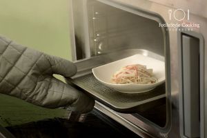 入方太蒸箱设置蔬菜模式,蒸制5分钟,