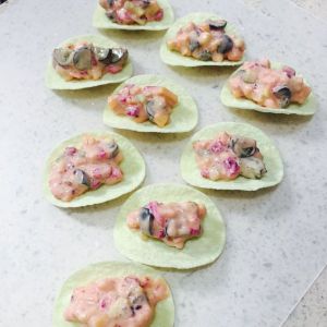 因为要放薯片上,所以都要切成丁。切的小,一片薯片上才能放的下各种水果