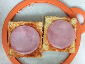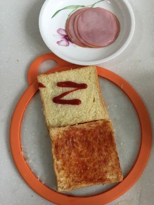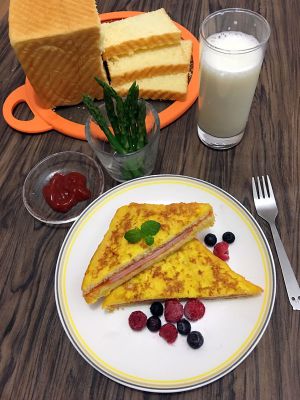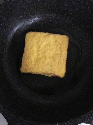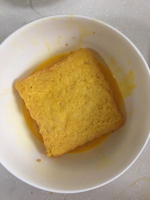将吐司放进碗里两面蘸上蛋液,轻轻蘸满即可。