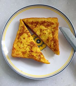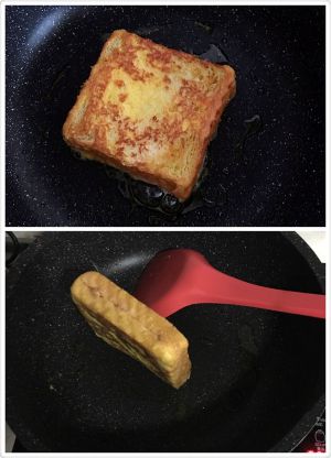 煎至双面金黄,四边也粘上蛋液了,要煎一下哦!