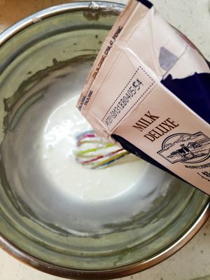 加入酸奶混合均匀后,再加牛奶混合均匀