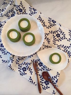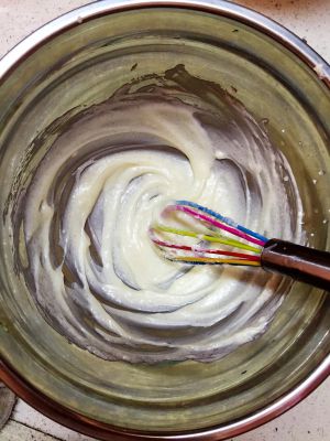 淡奶油➕色拉油,混合均匀。过筛抹茶粉翻拌混合均匀