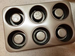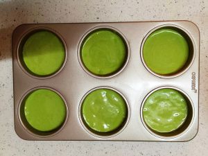 倒入模具,8分满。烤箱170度,中下层烤制20-25分钟(看自己烤箱情况)高处多震几下,消除气泡