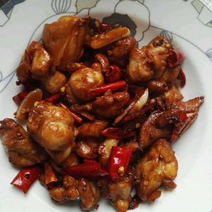 炒锅中放油,油烧热后下鸡肉煸炒1分钟,下姜片,再煸炒1分钟放蒜片。