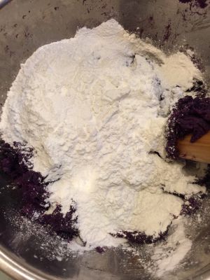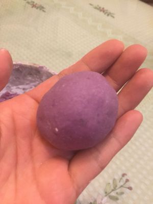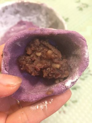 捏成一个兜兜后放入豆沙馅(豆沙馅是我自己做的)纯天然无添加呵呵