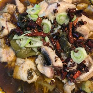 鱼上放上切好的葱片,浇上热油,香喷喷的酸菜鱼就做好啦!
