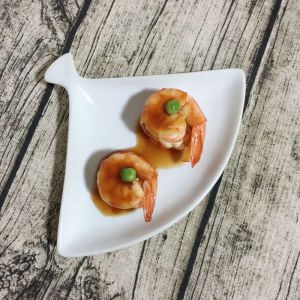 再在嫩豆腐表面各摆放一只虾仁。(忽然想起,一会儿蒸的时候,会有汁儿流出来,就又换了一个深盘来装了!)