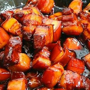 锅里加油,放入冰糖,小火弄成汁,再放入肉