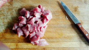 猪瘦肉500克切块,约1.5x1.5厘米即可