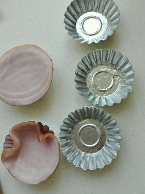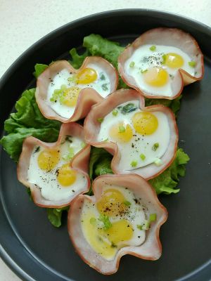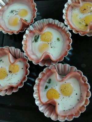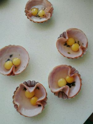 我加了一点儿海苔,然后每个模具里磕入两个鹌鹑蛋