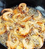锅里放油,油热后下虾炸至虾酥,捞出沥油。