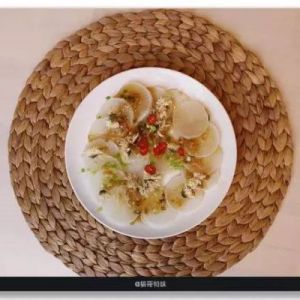 萝卜摆盘,洒杭白菊,上蒸锅蒸十分钟,萝卜半透明装出锅