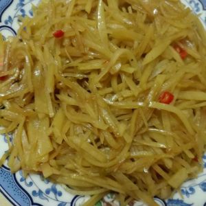 出锅前放少许酱油,若爱吃酸口,也可加少于醋