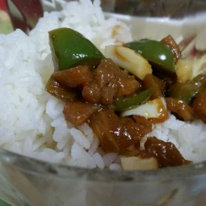 茄丁炒的差不多了的时候放入柿子椒丁,翻炒半分钟到一分钟