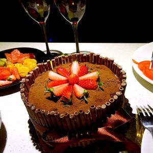 将百醇注心饼干掰成两半,一根根的放在脱完模的周围,蛋糕周围由于吹风机加热稍微有些融化,不用担心饼干会掉下来