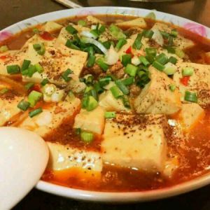 炒好后加入豆腐,颠下锅,当然我是不会的,我们家锅我也颠不动。我就是随便翻一下保证豆腐没烂就行了。之后加入水煮沸一会加入水淀粉勾个芡。