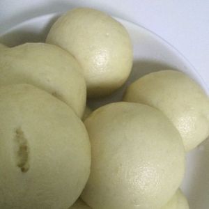 5.待面团发至原来两倍大时,即可取出,揉一揉,然后揉成一长条,切等分大小,大小可按照你想蒸的馒头大小而定。每一分揉成团,醒一回面(就是馒头大小的面团放置大概5-10分钟),锅里冷水馒头上锅蒸45分钟,香甜的馒头真是太喜欢了。