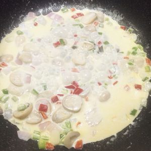倒入适量的淡奶油,继续煮开。