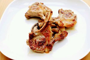 煎锅烧到很烫,入羊排煎。羊排上的蒜粒一定要全部拨掉,不然会烧焦然后粘在羊排上。我这个比较小,每面煎两分钟,用夹子把羊排立起来,皮朝下煎30-60秒左右。肉嫩皮脆