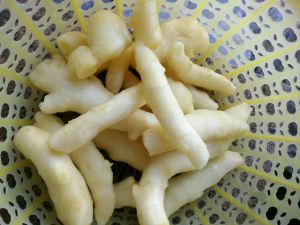 这是我泡好的!(姜最好用手撕开来吃,这样比较脆,这是我老公用刀切的,