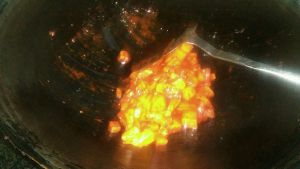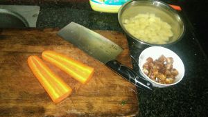 先炒肉,然后放土豆,最后放胡萝卜,一起炒,放盐,蚝油,配备的番茄酱,就成了料
