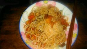 面条煮熟很Q,放入炒好的料一起拌均匀。就可以开动了~有兴趣的你也可以试试哦(´-ω-`)