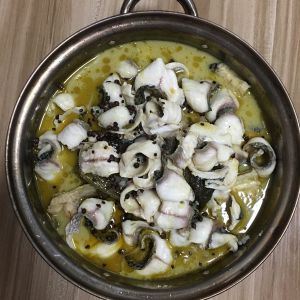 准备一条黑鱼,片成片,鱼骨鱼片洗净分开放。准备好葱姜,酸菜洗净,泡椒,辣椒,花椒,蛋清,淀粉备用。鱼片中打入一个蛋清,放一小把淀粉,搅拌均匀。热锅,倒油,把葱姜放锅里炸一下,放入鱼骨,翻炒,炒完加水,漫过鱼骨。大火烧开,调小火炖二十分钟,三十分钟都可以,把汤炖的白白的,加入洗好的酸菜和泡椒,炖十分钟,把炖好的捞出装盆,剩下的汤汁翻滚状态下把鱼片倒入,关火,把锅盖盖上,闷几分钟,倒入盆中,洗锅,热锅倒入油,一小把花椒和辣椒倒入油中,炸一会,有香味飘出,关火,把油倒入盆中的鱼上,这样就大功告成了,健康营养,还不长肉肉哦。