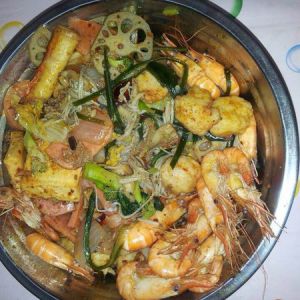 炒熟后呈出,继续放油炒荤菜类,炒熟后倒入麻辣香锅料。